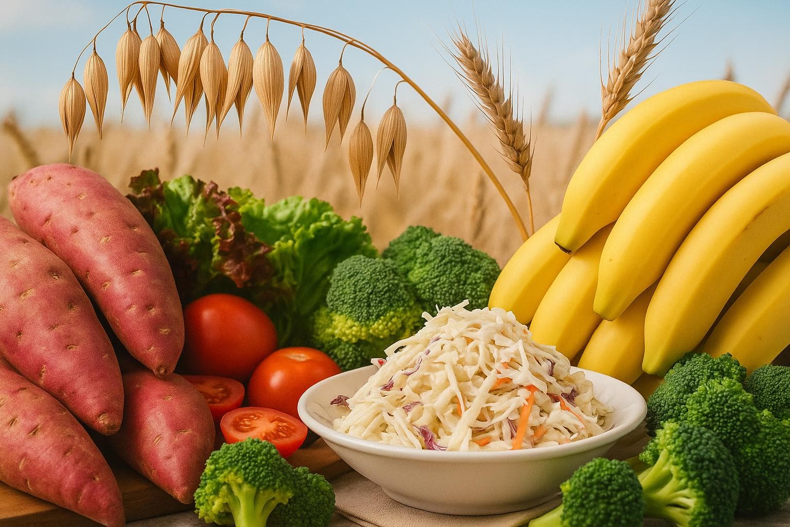 - 현미, 귀리, 보리, 고구마, 브로콜리, 양배추, 바나나